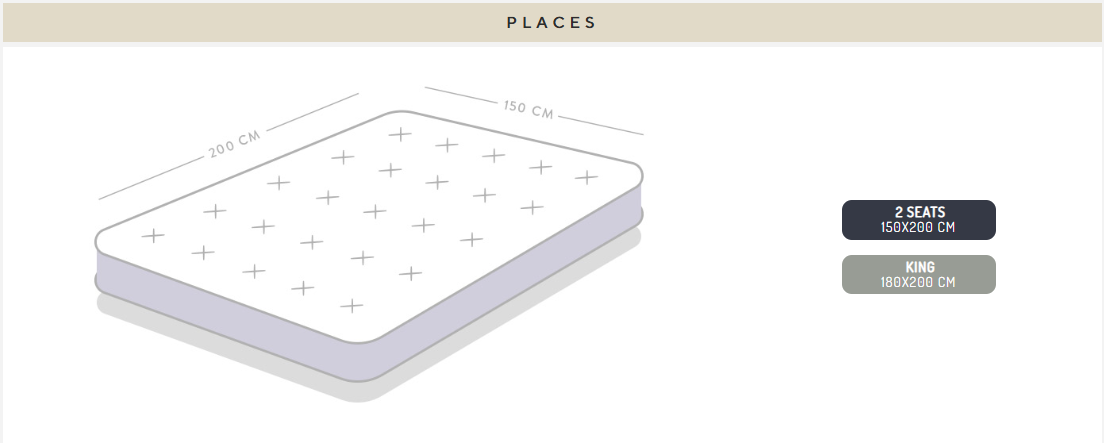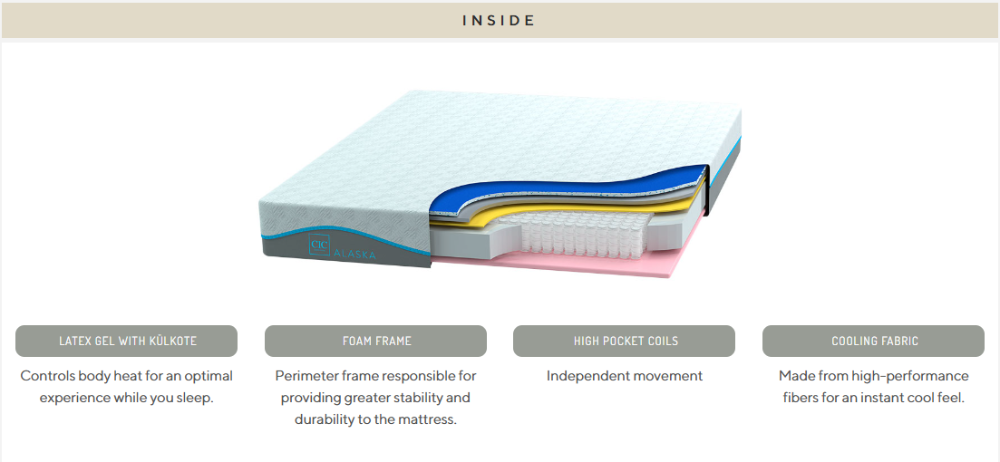 Alaska 2-seater mattress 150×200, with a triple cooling system in its composition: Extra cooling fabric that provides freshness and breathability, Latex gel sheet with thermoregulatory qualities that naturally maintain freshness by dissipating moisture, and finally